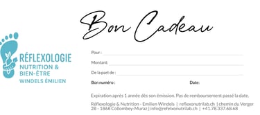 🌿 Choisissez un bon cadeau en réflexologie pour une pause profondément relaxante, ou un accompagnement en nutrition pour prendre soin de soi durablement.
